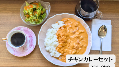 今日はフードメニューのご案内です。フードメニューは現在2種類ご用意。ひとつはチキンカレーセットです。ドリンクとカレー、サラダのセットで、1,250円になります。ドリンクは全てのメニューから選べます。カ...